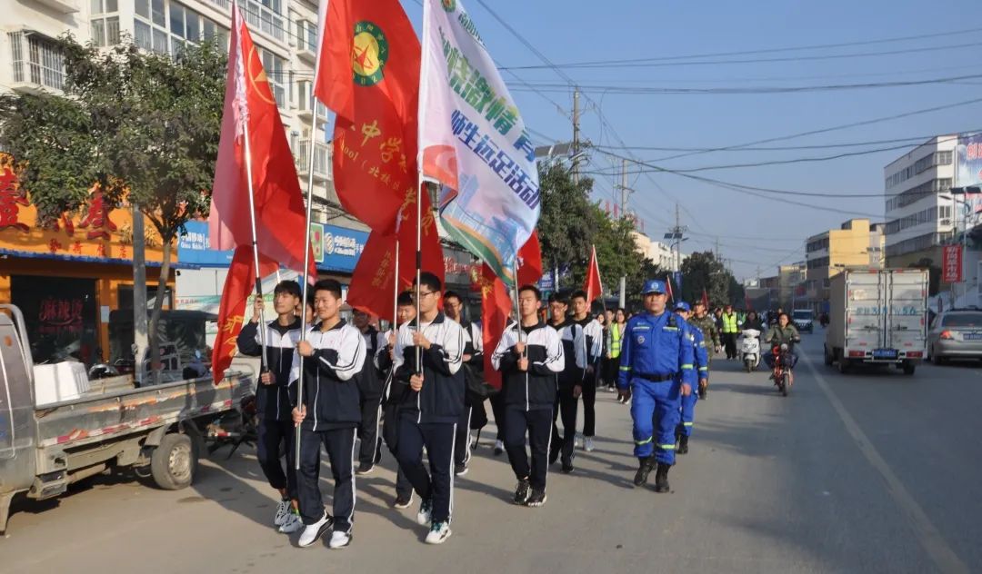 “出發!”史校長一聲令下,警車開路,旗手引導,救護車斷后,全校1600名師生,浩浩蕩蕩,向著磨山出發。