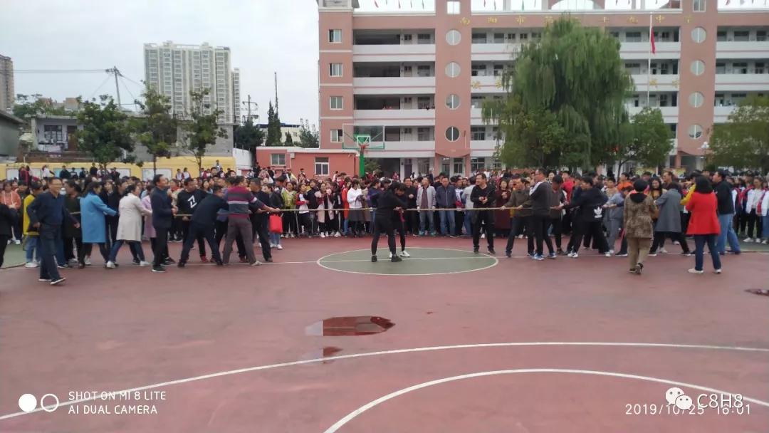 (教師們進行拔河比賽)