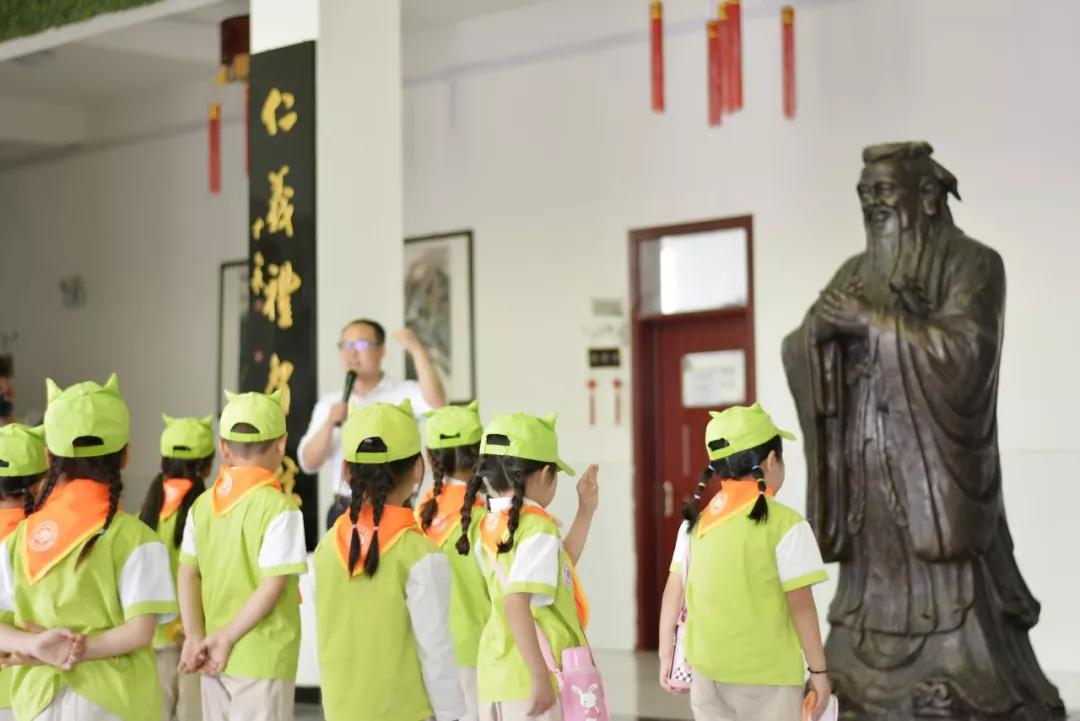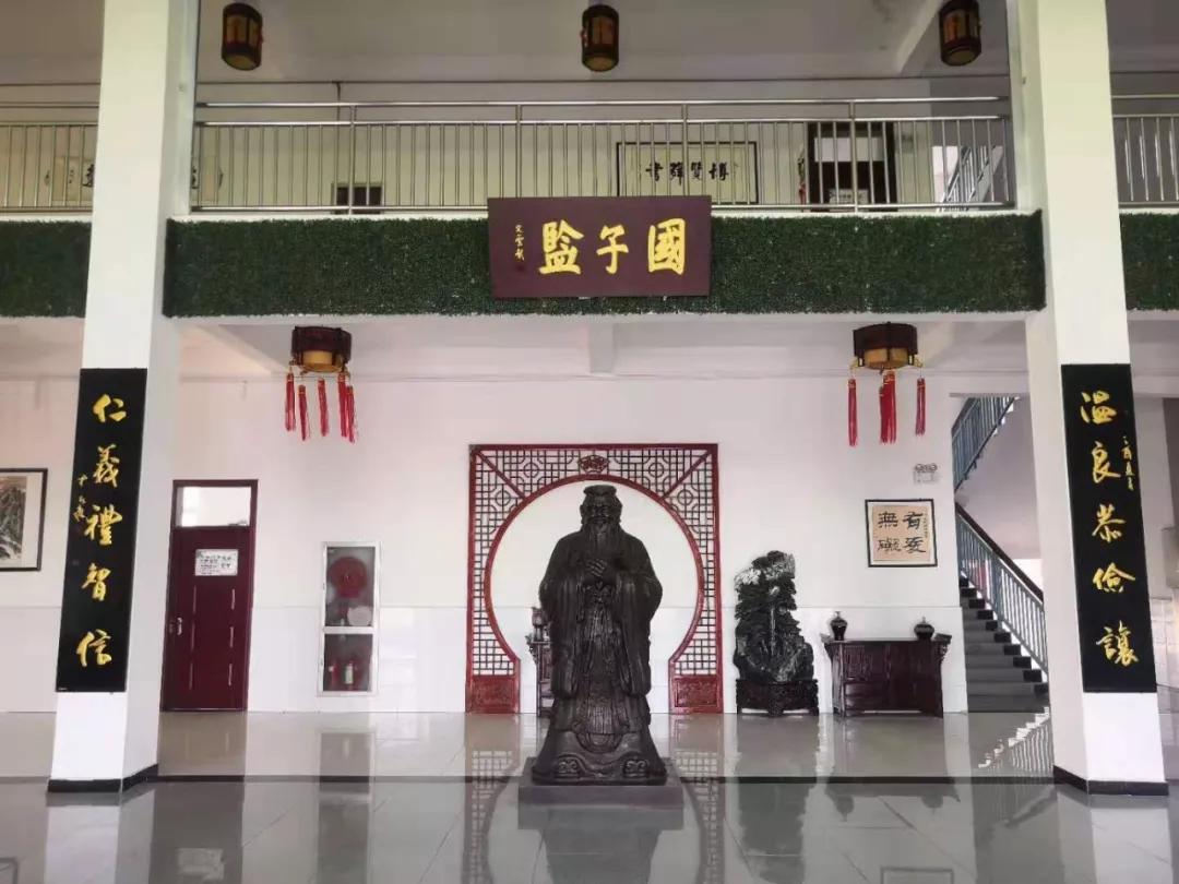 正值暑假,校園內十分寧靜、開闊、大氣,“春雨國文學校”六個紅色大字在端莊典雅的教學樓上方分外醒目,教學樓兩側的壁畫設計,蘊含著深厚的文化底蘊。教學樓一樓的大廳,高高矗立的是孔子的塑像,兩側分別是“溫良恭儉讓,仁義禮智信”的楹聯,彰顯了傳統國學文化在該校的根深蒂固。“氣有浩然,學無止境,尊師重道,薪火相傳”的校訓流露出的正是“傳承中華國學,培養國之棟梁”的教育理念。