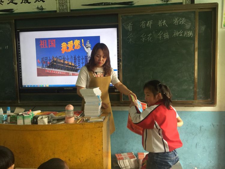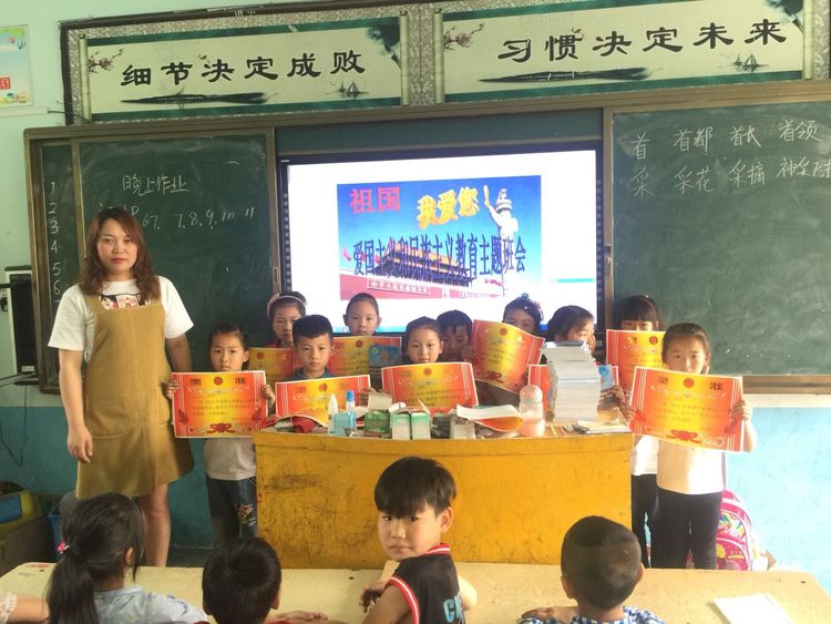 老師在給獲獎孩子們發獎!