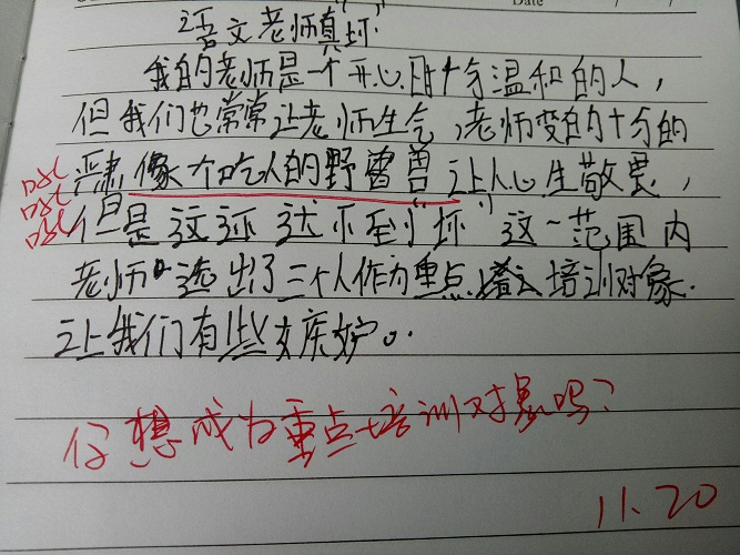 一次語文課堂,我在檢查古詩文的背誦情況,劉某某很是意外地被回答,處于對他這一部分同學的鼓勵,我隨機對他的問題回答進行點評。而就是這樣及時的點評與鼓勵,讓這個孩子學習的愿望被點燃,大膽地許諾,我在隨機將至的期中考試中語文可以考到及格。一個不曾考到五十分的同學,因為一次意外背誦順利得到老師的表揚,自信心頓時回來,并且愿意向優秀靠近,許諾脫貧,這是多么美好的心理訴求呀!我看時機成熟,趕緊向全體同學喧嚷,語言的蒼白必須要有行動的支撐,我們倆握手許諾,建立盟約,如若劉某某順利晉級,我將會給這孩子以物質獎勵,我會在底下的學習活動中幫助他,幫助老劉家的人一步步脫貧,走向自己想要走向的高度!隨后,我請同學們集體見證“我要幫助他,他要學習進步”這一偉大時刻,同學們拿出平板,為我們拍照。掌聲歡呼聲響起,成長中的儀式感瞬間培養,我和劉某在眾目睽睽之下,建立盟約,成為學習中的互助者。