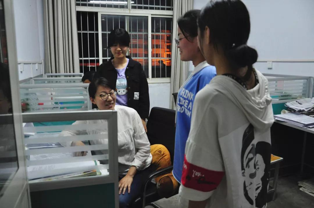 離就寢鈴聲還有10分鐘,楊老師到寢室樓查寢,并不斷囑咐同學們早點休息,全班共男女宿舍7個,楊老師都要認真的檢查一遍,這是一天工作中的“日常”。
