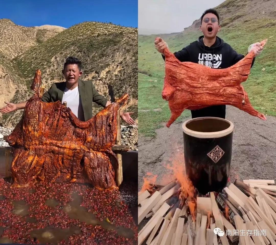 雪茸堂和藏地九哥被稱為是抖音上最不容易模仿的播主,這兩位發的每一部視頻幾乎都是燒烤或者烹煮大塊的牛羊肉、甚至有全羊、全駱駝,早期還大口吃蟲草。網友們根據自己本地的物價水平計算,這兩人每頓飯都要吃掉幾千快錢的肉。按照他們的視頻數量和食材價格,估測加起來可吃掉幾十萬的肉...