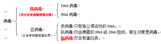 (3)按化學組成分類:真病毒(至少含有核酸和蛋白質)、亞病毒(僅含有核酸或蛋白質)