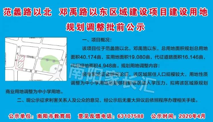 南陽十五小東校區以西,40余畝地調整為中小學用地