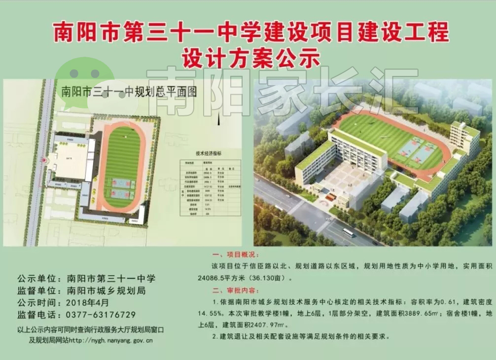 南陽市三十一中地址,和三十一小關系是什么 三十一小 三十一中 未知/陽光 2018-04-24 次瀏覽 近日,南陽市規劃局發布了南陽市第三十一中建設項目設計方案公示,南陽市三十一中很多人都沒聽說過,這也難怪,其實這是一所籌備要建設的中學,我們可以在公示上看到,規劃用地是中小學。 很多人還好奇,是不是三十一小擴建的,因為這個位置在信臣路以北,其實這個位置和三十一小差的很遠,南陽市三十一中地址在城鄉一體化示范區,恒大帝景和油田新城之間,在雷莊的地面上。