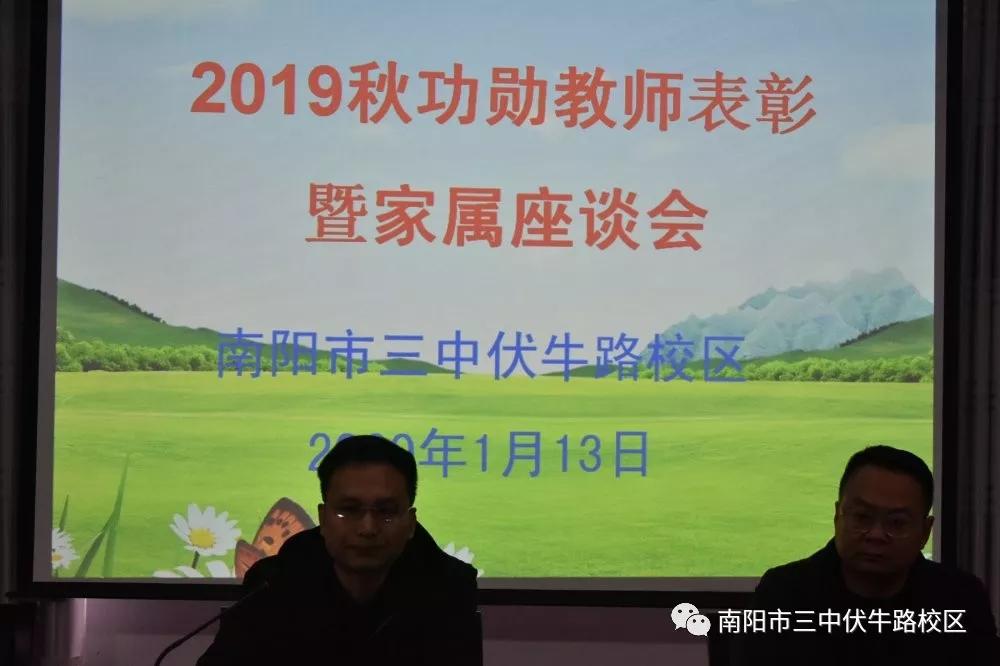 學校的發展離不開教師們的拼搏奉獻,更離不開教師家屬們背后的默默付出!值辭別砥礪奮進的2019,邁入華章初展的2020之際,南陽市三中伏牛路校區于元月13日上午在二樓會議室召開了功勛教師表彰暨家屬座談會。會議由南陽市三中伏牛路校區副校長王丙燕主持。