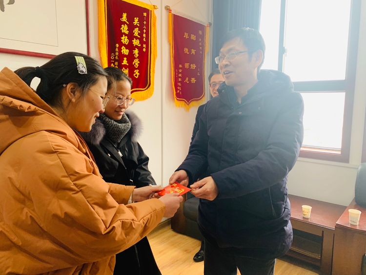 在2020年春節來臨之際,1月14日上午,南陽市臥龍區教體局黨委書記、局長霍書曉來十二中新校區視察指導工作并慰問困難教師。十二中新校區校長劉澤率校領導班子:副校長鄭繼遠、張自帥全程陪同。
