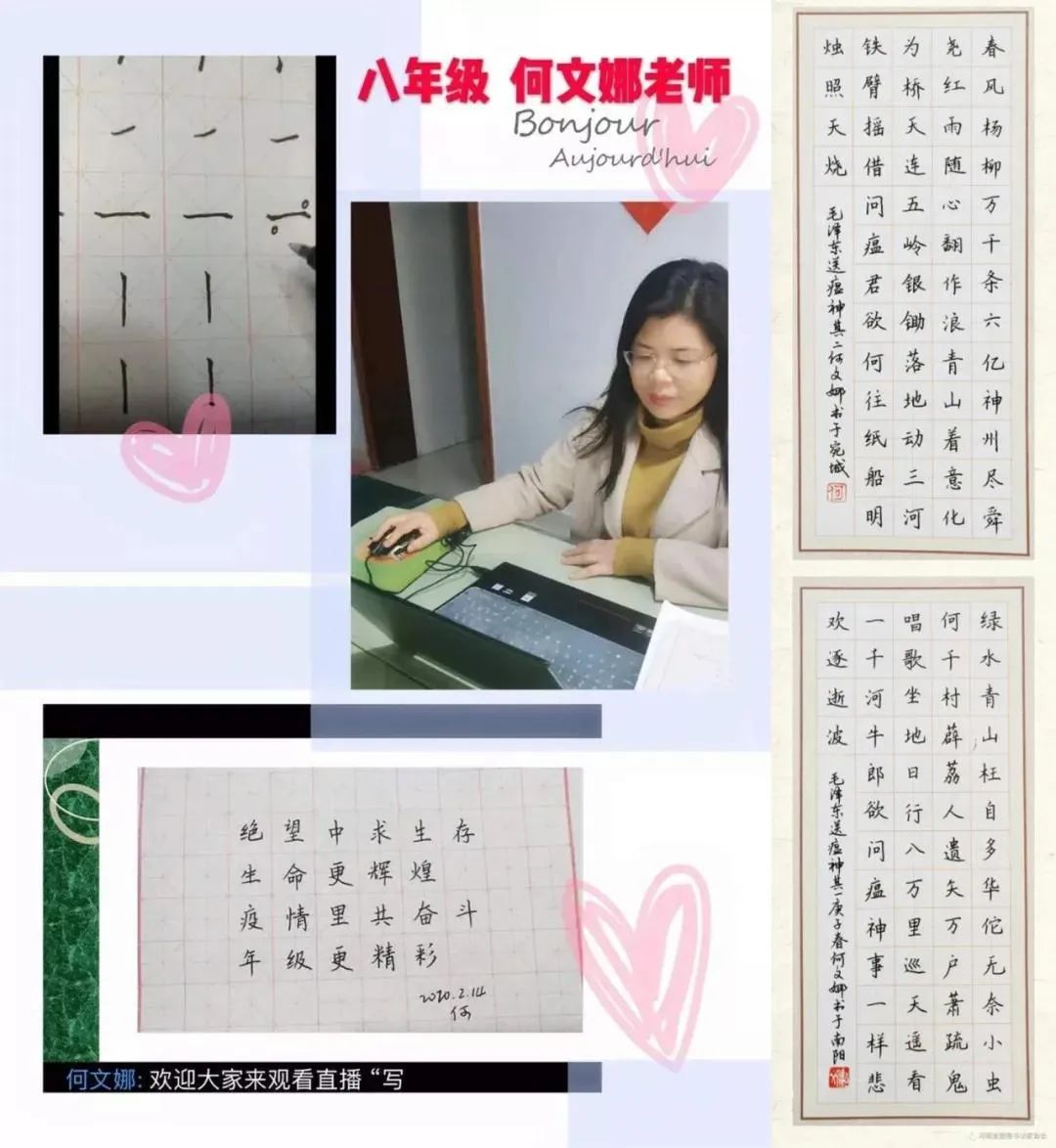 十一小學“科學抗“疫” 從“心”出發”的袁峰老師,在這個“抗疫”長假里,她不僅輔導學生學習、安排指導學生生活,更加關注學生心理健康,用積極的心態、科學的指導、智慧的溝通陪伴學生,為學生和家長提供幫助。二十一學校的武華云老師,不僅數學教的好,作為班主任的她,通過開展“網上主題班會”等活動,讓孩子們認識疫情,敬畏生命,培養他們發憤圖強,責任擔當的意識。“屋頂直播間”的八中教師張向柱、“直播做實驗”的十一中教師馬哲、手書六萬言的十七小學教師趙喜鳳,十四小學的武斐然、二十一學校的張志銀、潦河一中的李學芳、十二中的何雯娜、英莊一小的軍嫂老師趙宇、十四中的肖博老師等。這些優秀教師的典型事跡,不僅溫暖了學生和家長,更是溫暖了我們全體教育人的心。