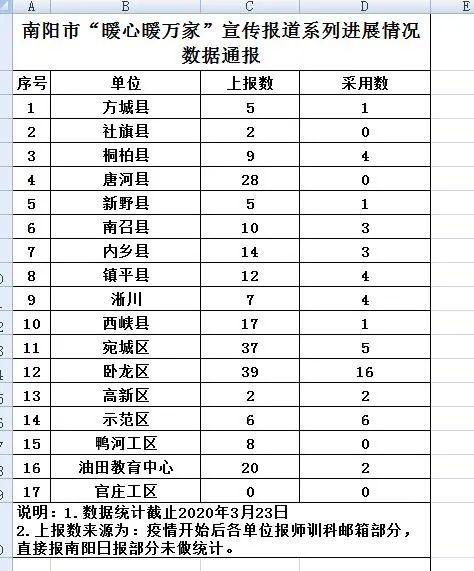3月2日,市教育局下發了《關于做好疫情防控期間網上教學先進典型教師宣傳工作的通知》,區教體局第一時間把通知轉發給各學校、各單位。各單位高度重視,認真組織,積極上報,截止到3月25日,共收到網上教學先進典型84例,推薦上報到市教育局43例,其中有19人的先進事跡在南陽日報上展播,推薦上報和展播為全市第一名。