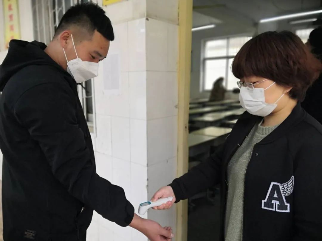 場景二:入班上課學生入校后,班主任逐一登記、消毒、體溫測量復檢。體溫無異常進入教室,要求座位前后左右有一定間隔,課間要求學生不扎堆、不串班。上課時,教室保持通風,根據細則定期消毒。班主任要嚴格按照細則落實晨、午檢制度,遇到學生報告體溫異常,班主任(老師)立即用額溫測試儀快速測量該生體溫,并安排專人帶其至隔離室。