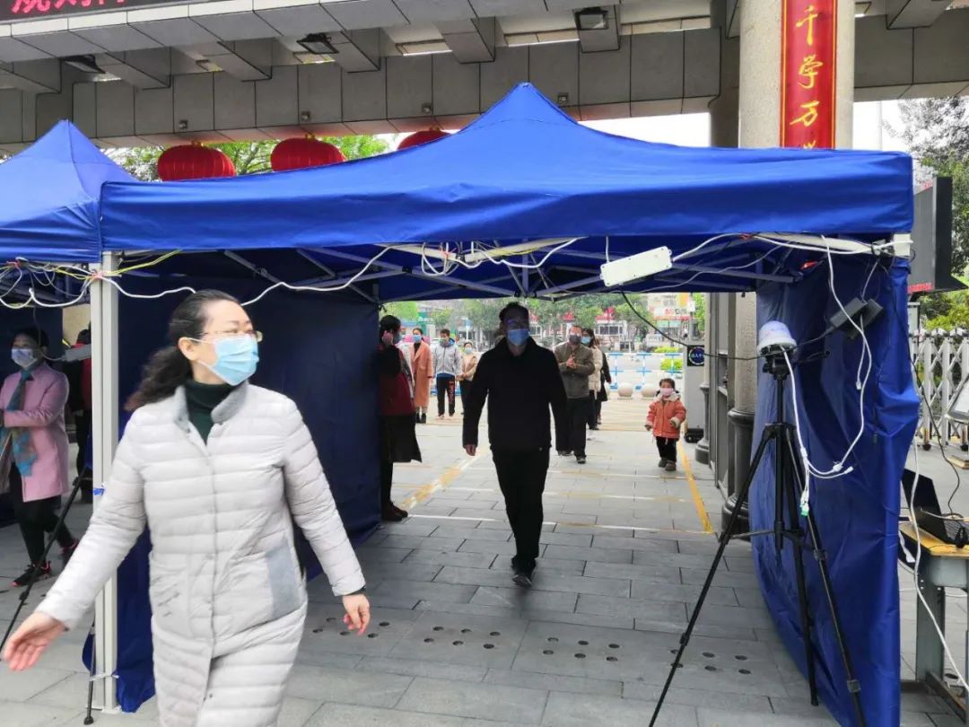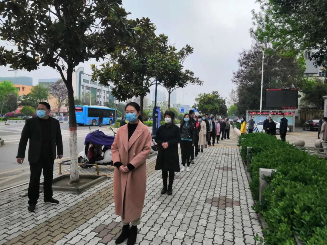 南陽市第十九中學防控演練2020.4.1場景一:入校學生入校時,分批次列隊有序進入校園,同時進行消毒及熱成像體溫檢測。
