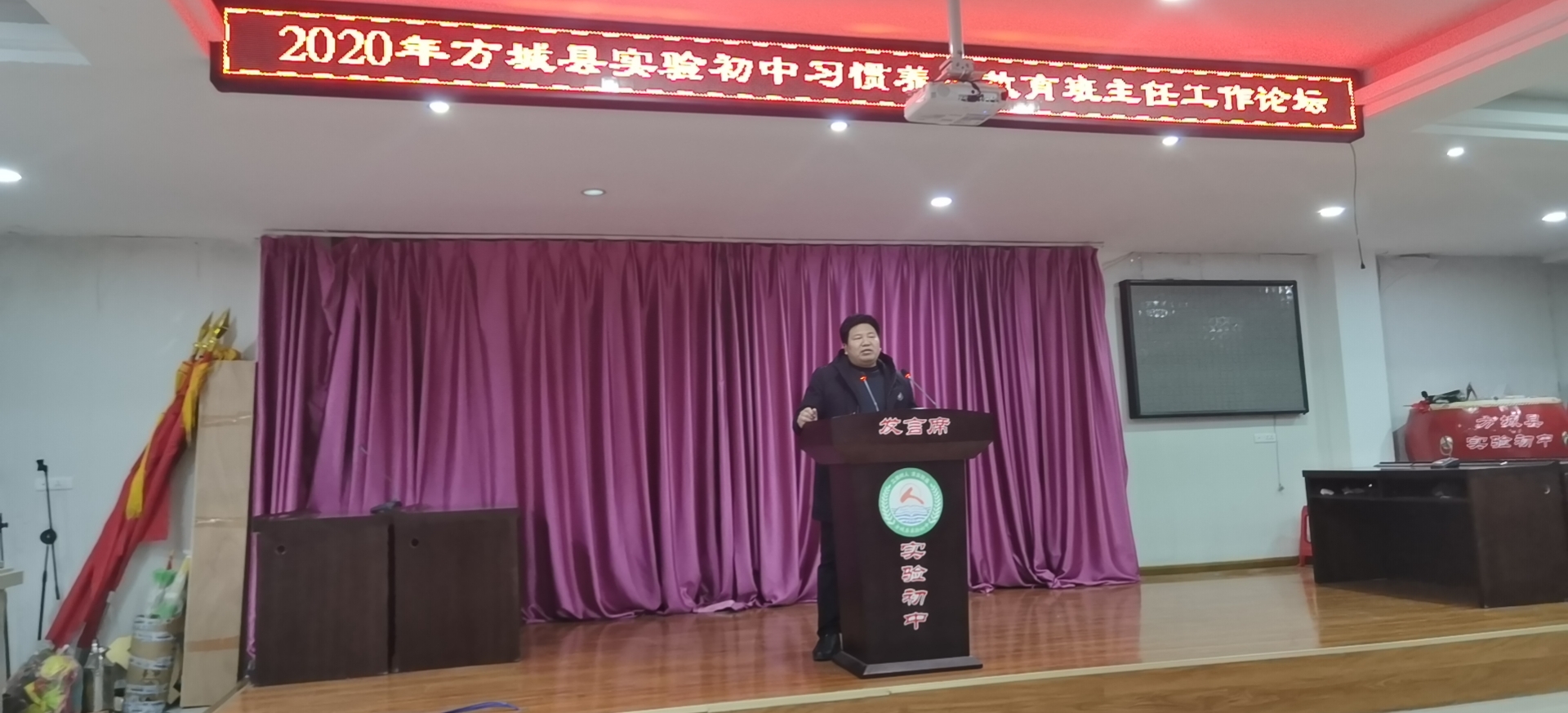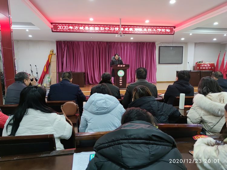 2020年12月23日晚上6:30,南陽市方城縣實驗初中在西三樓會議室舉辦2020年習慣養成教育班主任論壇,全體領導班子、全體班主任和青年教師參加會議,實驗初中支部書記、校長穆德會出席并作重要講話。