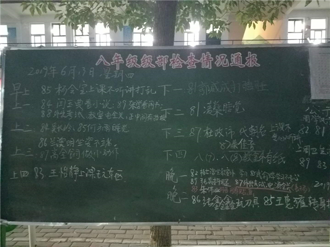 2019年6月13日,方城縣實驗初中進行本學期第四次黑板報評比。本次黑板報評比活動中各班級行動速度快,版報品質高,得到師生的一致好評。