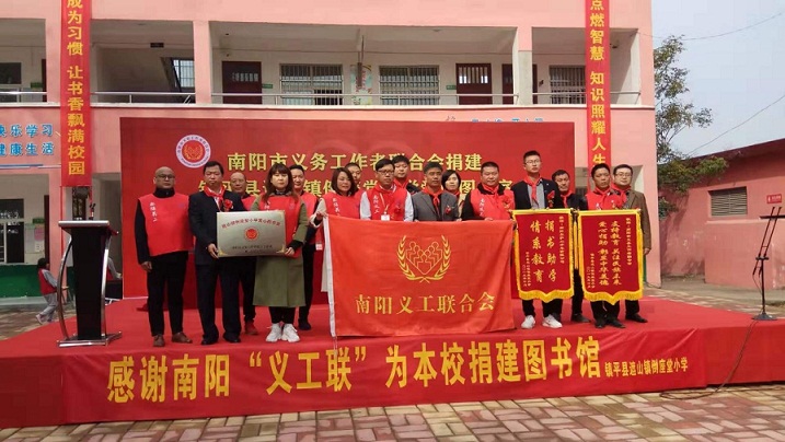 10月17日,南陽義工聯合會捐建遮山鎮倒座堂小學愛心圖書室揭牌儀式舉行。