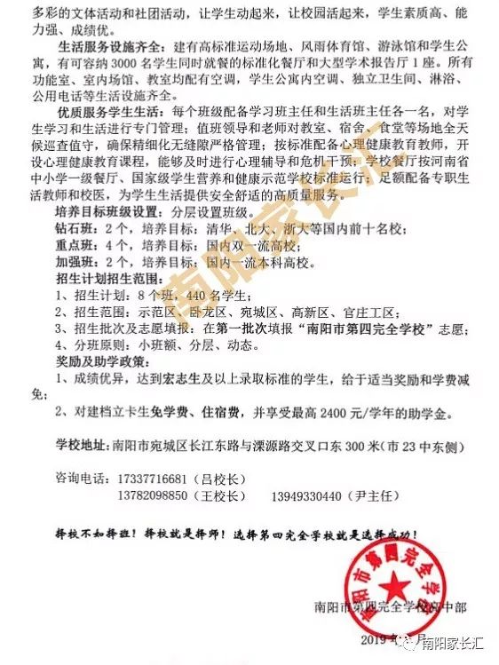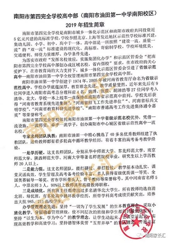 南陽市第四完全學校高中部招生簡章