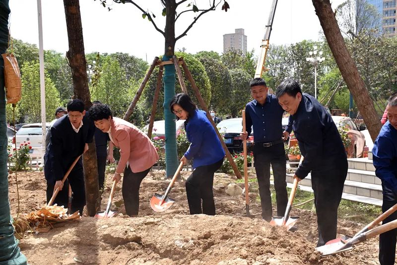 4月24日中午,河南省教育廳副廳長毛杰,南陽市委副書記、市長霍好勝蒞臨南陽一中,察看綠化工程進展,并為新栽種苗木揮鍬培土。南陽市副市長阿穎陪同。