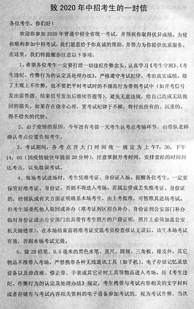 思想品德和歷史學科實行開卷考試,允許考生自帶參考資料參加考試。開卷考試必須堅持獨立答題,不得交頭接耳、相互商量,更不得相互抄襲。