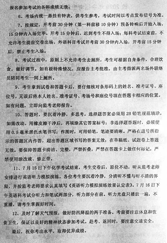還需要提醒考生特別注意的是,英語學科開考前15分鐘后不得進入考場;其他科目開考15分鐘后不得進入考場。