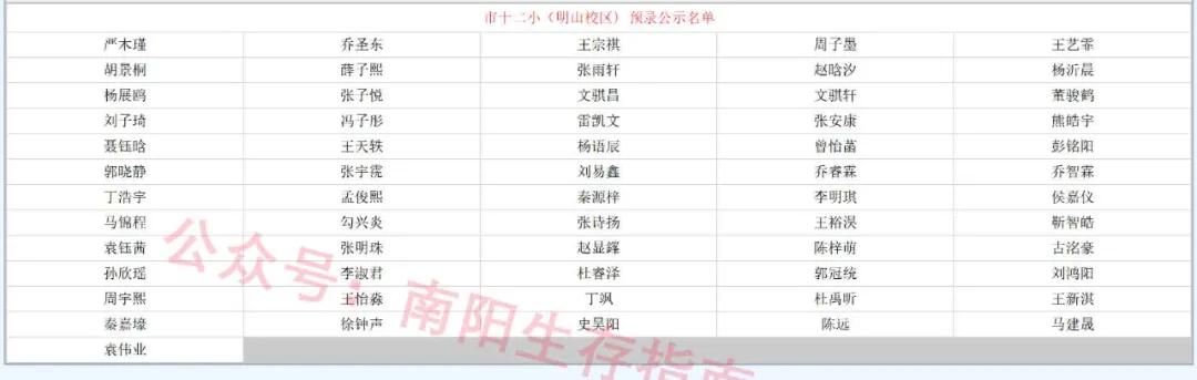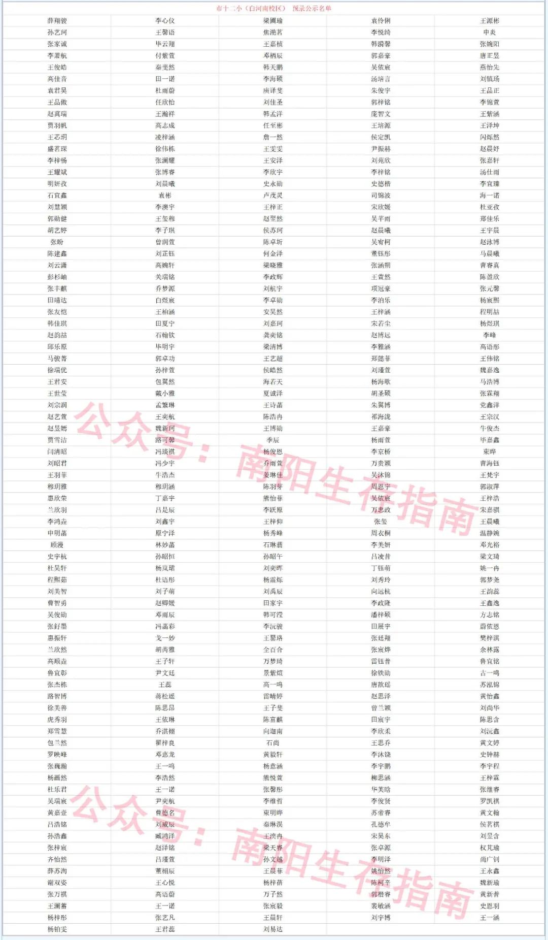 2020年南陽市小升初、市直小學一年級錄取名單公示(2)