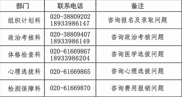 問:空軍招飛局廣州選拔中心聯系方式是?