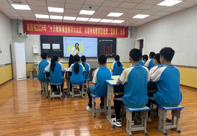 2024春期“十萬教師課堂教學大比武”活動市級特殊教育現場課(聾教育)比賽 南陽市特殊教育學校 未知/陽光 2024-05-01 次瀏覽 姹紫嫣紅花滿城,特教競技比武中。2024年4月28日到30日,南陽市“十萬教師課堂教學大比武”聾教育市級現場課比賽在南陽市特殊教育學校隆重舉行。 本次比賽由南陽市特殊教育指導中心統籌領導,南陽市特殊教育學校承辦,更得到了全市特殊教育學校和教師的大力支持。 比賽中間,教育局四級調研員、基礎教育二科科長張西浩以及李帥同志親臨現場指導賽課工作,南陽市特殊教育指導中心副主任、南陽市特殊教育學校黨支部書記、校長吳朝東全程陪同。 南陽市特殊教育學校作為市級現場課的承辦單位,全體教師為比賽活動的圓滿舉行付出了大量的心血和汗水。 本次參賽科目涵蓋了語文、數學、英語、美術、信息技術等多個學科。 在比賽過程中,來自全市特殊教育學校的24名教師同臺競技、激烈角逐,大家圍繞特殊教育的“新課改”“高效課堂”“雙基目標”“項目式學習”等熱詞熱點大膽實踐、勇于創新。 在比賽過程中,各位參賽教師充分發揮自身優勢,創新教學方法,運用多種教學手段,充分激發學生的學習興趣,培養學生的自主學習能力。 多媒體、網絡信息技術手段的高效運用,讓“無聲”課堂擁有了不一樣的魅力和精彩! 奇妙的課堂設計,嫻熟的中國手語,幽默的師生交流,精彩的引申拓展,教師們扎實的教學基本功和人格魅力,讓“無聲”課堂擁有了不一樣的色彩與溫度! 2024年,是南陽市“十萬教師課堂教學大比武”繼續走向深化的一年。本次活動的舉行,有利于提升廣大特殊教育教師的課堂改革創新能力,讓更多特殊教育教師走上了市級賽課“舞臺”,練真功、強素質,更加強了全市特殊教育學校和教師之間的溝通與交流。相信在活動的推動下,我市特殊教育教學質量一定會迎來更大的提升。