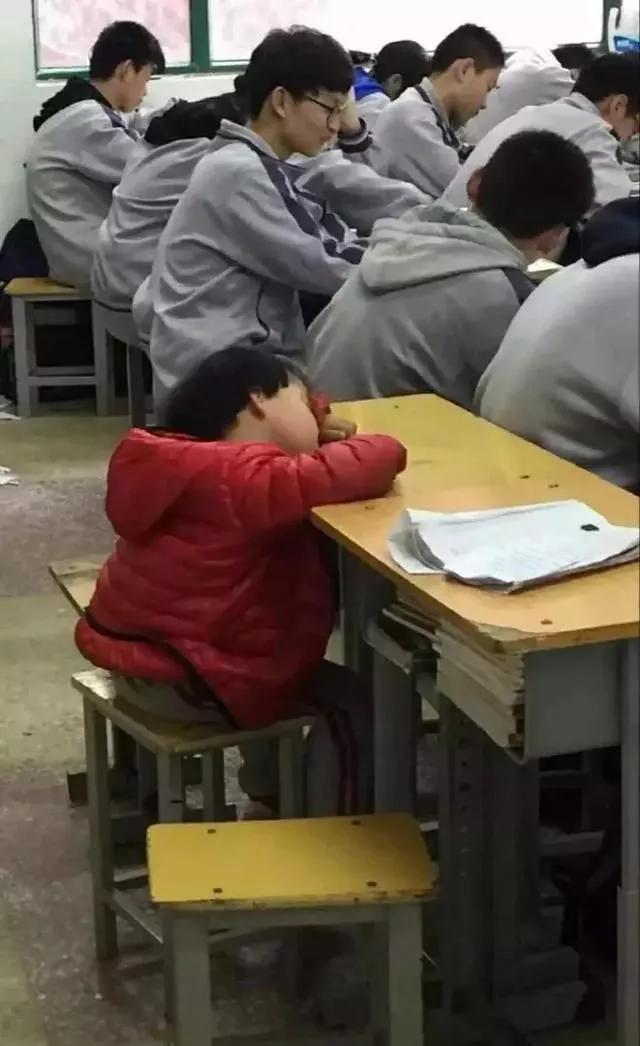 該照片主角是二十一學校呂云霞老師4歲的女兒淼淼,呂云霞當時正在前面講課,她4歲的女兒趴在教室后面的桌子上睡著了。