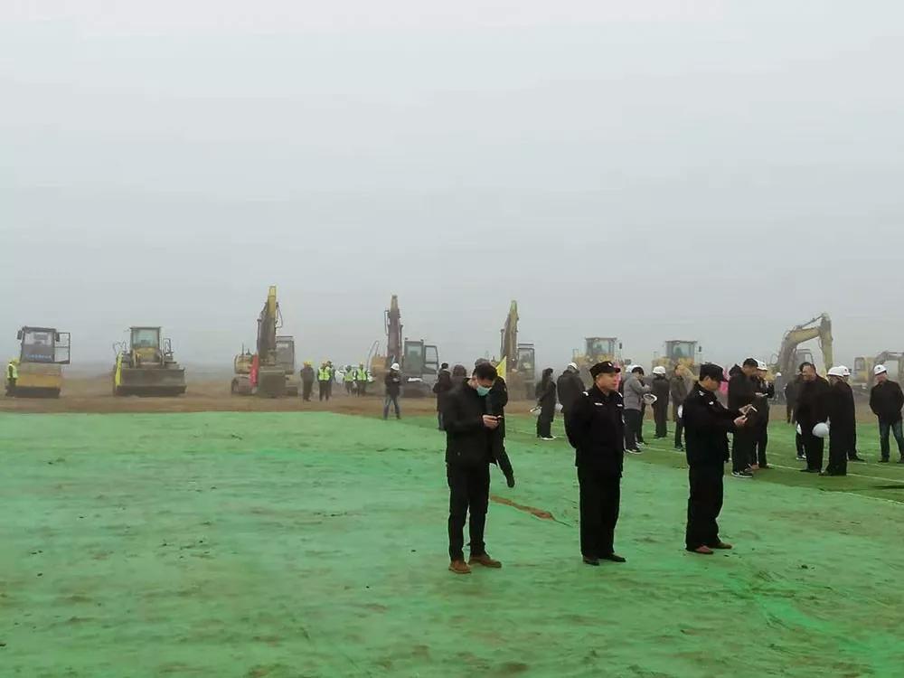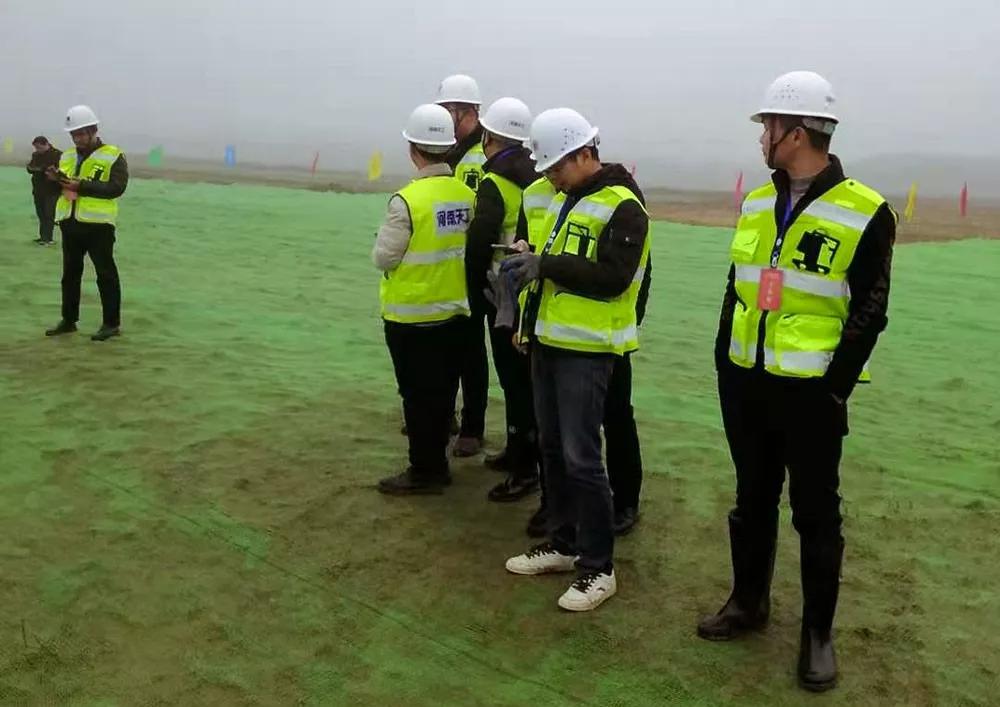 現場戴安全帽的河南天工人員,白色安全帽的一般為工程管理或監理人員,遠處還有一些戴黃色安全帽的施工工人。